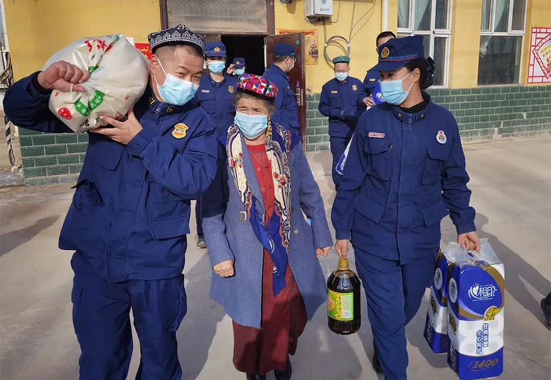 “米夏人民苦,一年兩斤土,三代土坯房、紅水就干馕”是伽師縣米夏鄉(xiāng)英買里村群眾生活的真實寫照。為幫助親戚擺脫貧困,喀什支隊不僅為村民提供力所能及的幫助,還指導種植經(jīng)濟作物、開展技術(shù)培訓、拓寬就業(yè)渠道,推著村民們致富。110次入戶走訪,135萬元幫扶資金,30余個就業(yè)崗位,5名貧困生圓夢大學......英買里村的田間地頭留下了火焰藍的丈量足跡,瓜鄉(xiāng)銅城的一草一木見證了消防救援人員的真情付出。2020年3月,村里的青年喀斯木·阿西木大學畢業(yè)后毅然選擇加入消防救援隊伍,讓火焰藍和親戚們的聯(lián)系更加緊密,消防救援隊伍竭誠為民的底色更加深入人心。