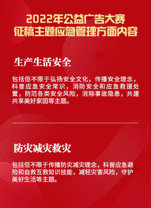 本屆大賽的主題是“以創(chuàng)意 助公益”,旨在推動(dòng)優(yōu)秀公益廣告創(chuàng)作,以公益廣告精品引導(dǎo)社會(huì)關(guān)注關(guān)切,傳遞溫暖溫情,弘揚(yáng)時(shí)代新風(fēng),培育文明風(fēng)尚,為黨的二十大勝利召開營(yíng)造良好氛圍。