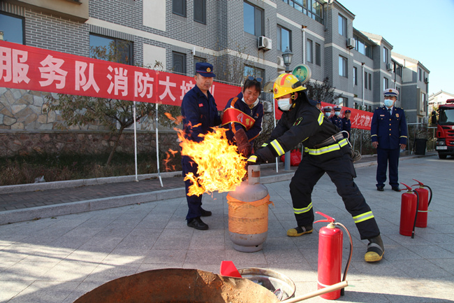長島大隊(duì)培訓(xùn)漁嫂消防志愿者掌握滅火技能。長島大隊(duì)供圖