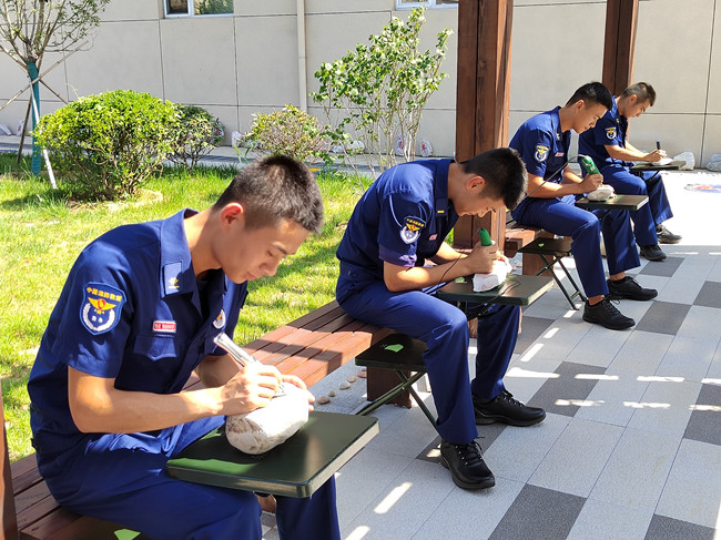 大隊(duì)組建石刻班,豐富駐島消防員文化生活。長島大隊(duì)供圖