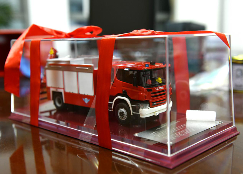 陳陸生前在辦公室擺放的消防車模型。安徽消防供圖
