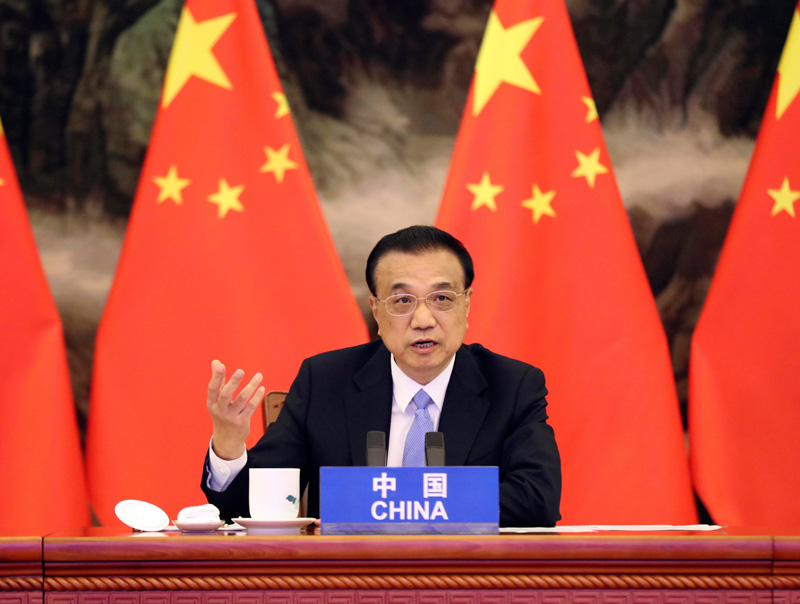 國務(wù)院總理李克強(qiáng)11月15日上午在人民大會(huì)堂出席第四次區(qū)域全面經(jīng)濟(jì)伙伴關(guān)系協(xié)定(RCEP)領(lǐng)導(dǎo)人會(huì)議。東盟十國以及韓國、日本、澳大利亞、新西蘭等國家領(lǐng)導(dǎo)人與會(huì)。會(huì)議以視頻形式舉行。