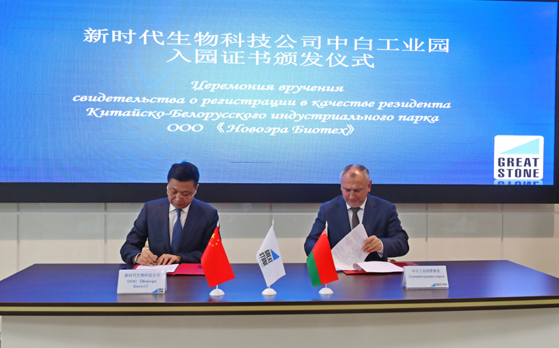3月18日,在白俄羅斯首都明斯克郊區(qū)的中白工業(yè)園,工業(yè)園與入駐項(xiàng)目代表簽署入園協(xié)議。新華社發(fā)(任科夫 攝)