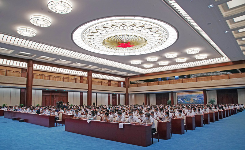是7月5日在北京拍攝的報告會會場。新華社記者 陳曄華 攝