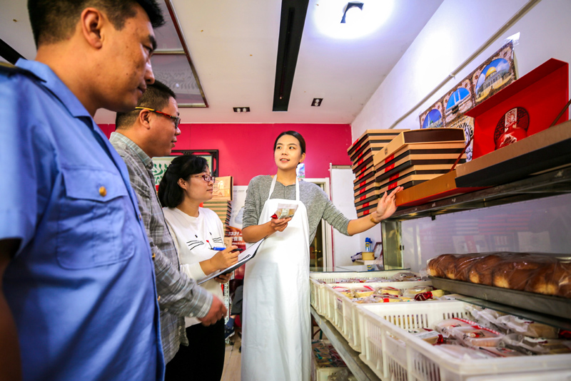 2018年9月20日,河北省大廠回族自治縣紀(jì)檢干部和工商局稽查人員走訪一家月餅禮品商店,了解有無(wú)公款消費(fèi)情況。新華社記者 李曉果 攝