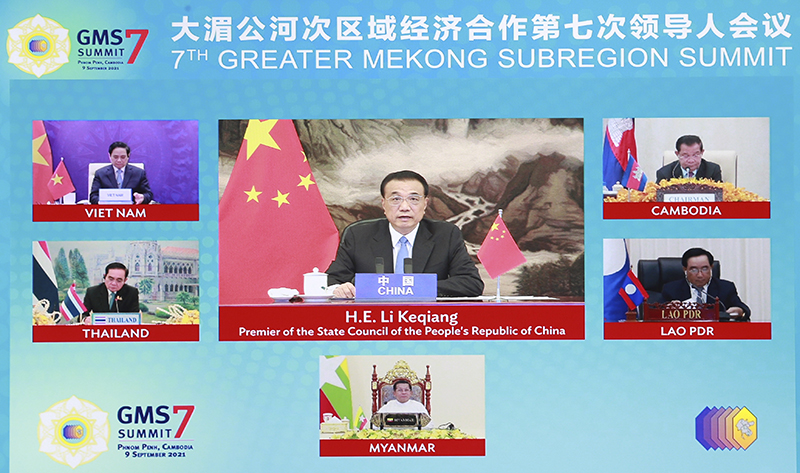 國務(wù)院總理李克強(qiáng)9月9日上午在人民大會(huì)堂出席大湄公河次區(qū)域經(jīng)濟(jì)合作第七次領(lǐng)導(dǎo)人會(huì)議并發(fā)表講話。柬埔寨首相洪森主持會(huì)議,老撾政府總理潘坎、緬甸國家管理委員會(huì)主席敏昂萊、泰國總理巴育、越南總理范明政和亞洲開發(fā)銀行行長淺川雅嗣出席。會(huì)議以視頻方式舉行。