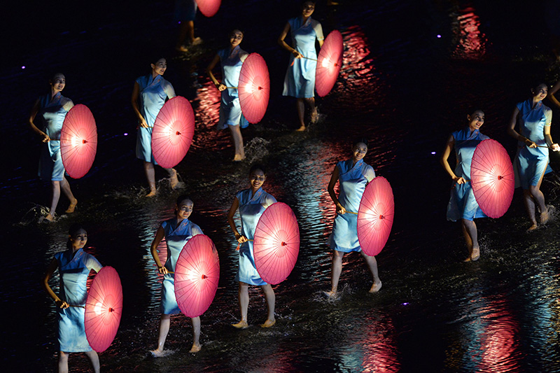 演員在西湖景區(qū)進行的G20杭州峰會文藝演出《最憶是杭州》中表演《難忘茉莉花》(2016年9月4日攝)。新華社記者 黃宗治 攝