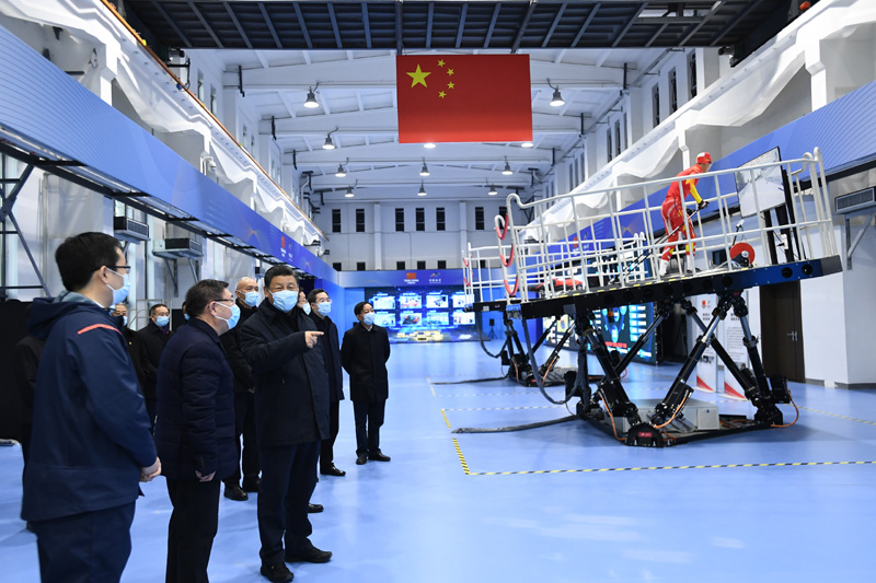 1月4日,中共中央總書記、國家主席、中央軍委主席習(xí)近平在北京考察2022年冬奧會、冬殘奧會籌辦備賽工作。這是4日下午,習(xí)近平在二七廠冰雪項(xiàng)目訓(xùn)練基地六自由度訓(xùn)練館考察。新華社記者 燕雁 攝