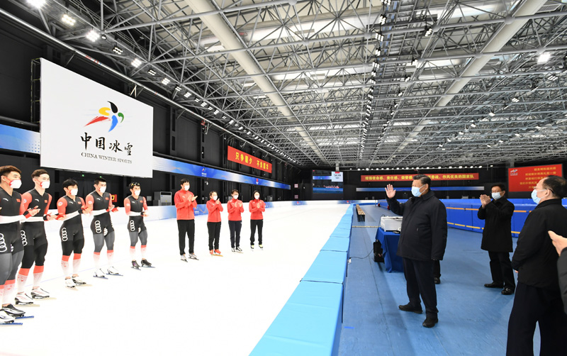 1月4日,中共中央總書記、國家主席、中央軍委主席習(xí)近平在北京考察2022年冬奧會、冬殘奧會籌辦備賽工作。這是4日下午,習(xí)近平在二七廠冰雪項(xiàng)目訓(xùn)練基地速滑館,向參訓(xùn)運(yùn)動員、教練員表示慰問。新華社記者 謝環(huán)馳 攝