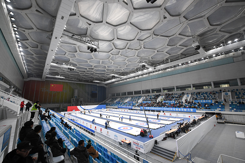 2019年12月8日,觀眾在“冰立方”觀看中國(guó)青少年冰壺公開(kāi)賽女子冰壺決賽。新華社記者 鞠煥宗 攝