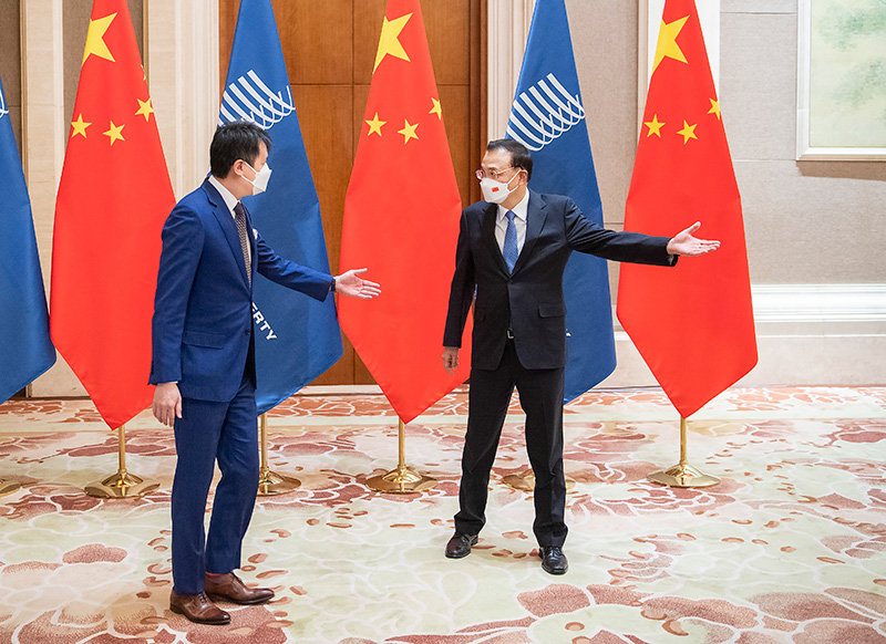 2月5日上午,國務(wù)院總理李克強在北京釣魚臺國賓館會見來華出席北京冬奧會開幕式的世界知識產(chǎn)權(quán)組織總干事鄧鴻森。新華社記者 李濤 攝