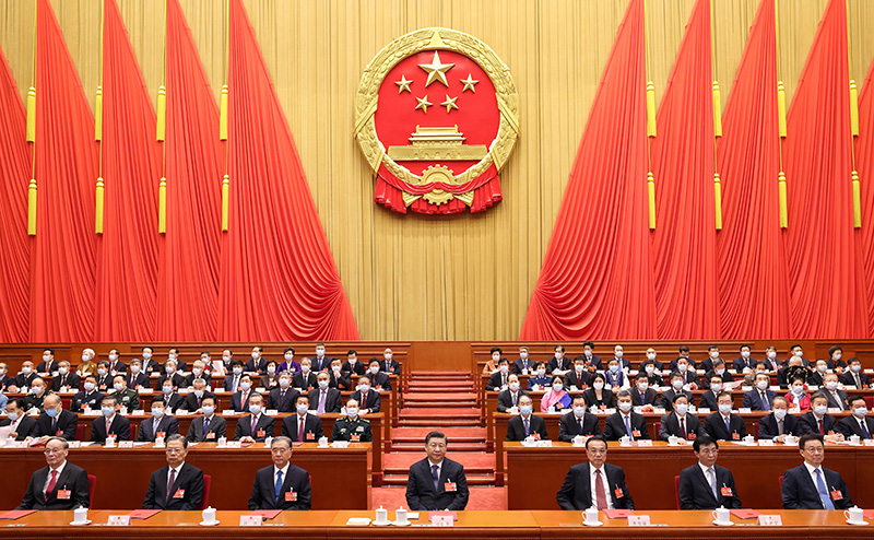 3月11日,第十三屆全國人民代表大會第五次會議在北京人民大會堂閉幕。黨和國家領(lǐng)導(dǎo)人習(xí)近平、李克強(qiáng)、汪洋、王滬寧、趙樂際、韓正、王岐山等在主席臺就座,栗戰(zhàn)書主持閉幕會并發(fā)表講話。新華社記者 黃敬文 攝
