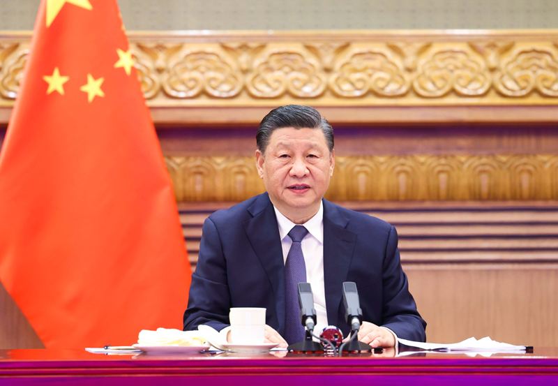 3月18日晚,國家主席習(xí)近平在北京應(yīng)約同美國總統(tǒng)拜登視頻通話。新華社記者 劉彬 攝