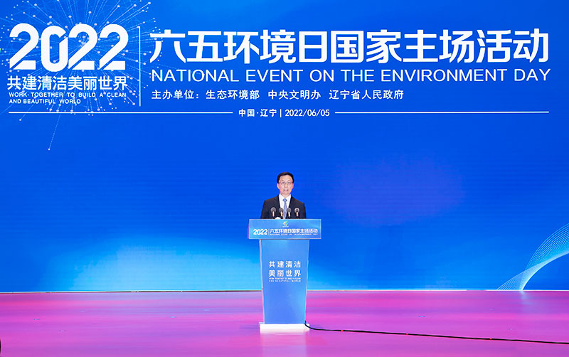 6月5日,2022年六五環(huán)境日國家主場活動在遼寧省沈陽市舉行。中共中央總書記、國家主席、中央軍委主席習近平發(fā)來賀信,向活動的舉辦表示熱烈的祝賀。中共中央政治局常委、國務院副總理韓正在活動開幕式上宣讀了習近平的賀信并講話。新華社記者 李濤 攝