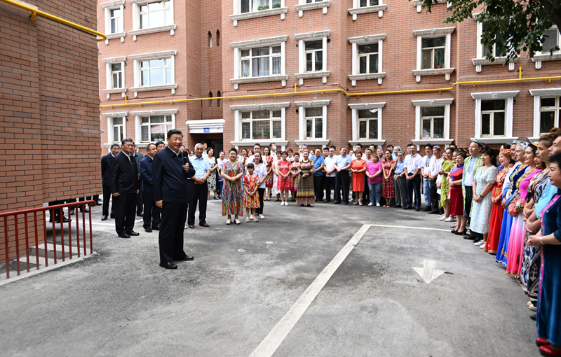 7月12日至15日,中共中央總書記、國家主席、中央軍委主席習(xí)近平在新疆考察。這是13日上午,習(xí)近平在烏魯木齊市天山區(qū)固原巷社區(qū)考察時(shí),同各族群眾在一起。新華社記者 謝環(huán)馳 攝