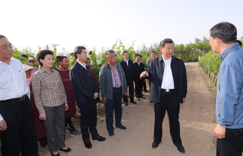 6月8日至10日,中共中央總書記、國(guó)家主席、中央軍委主席習(xí)近平在寧夏考察。這是6月9日下午,習(xí)近平在銀川市西夏區(qū)葡萄種植基地,同工人和技術(shù)人員交流。新華社記者 鞠鵬 攝
