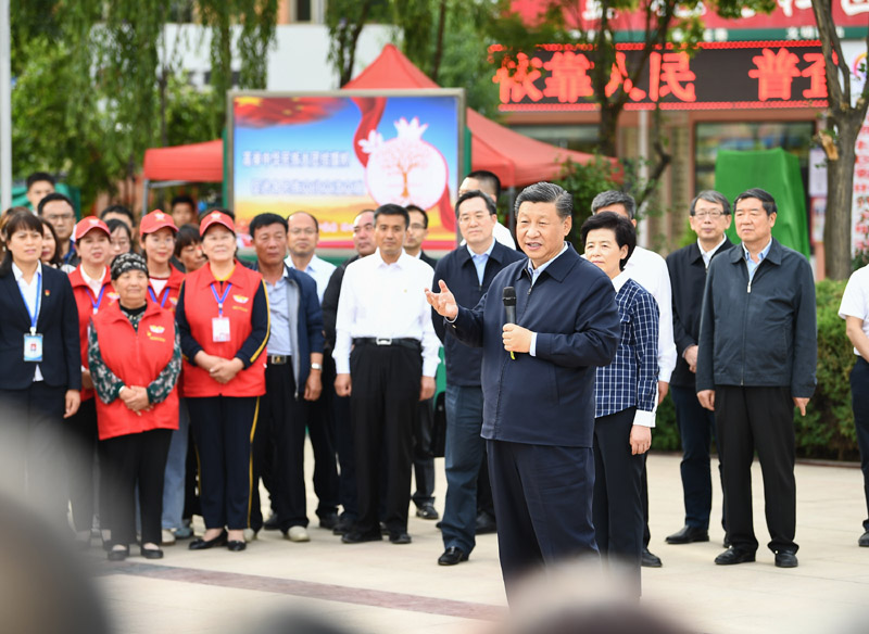 6月8日至10日,中共中央總書記、國(guó)家主席、中央軍委主席習(xí)近平在寧夏考察。這是6月8日下午,習(xí)近平在吳忠市利通區(qū)金花園社區(qū)廣場(chǎng),同居民們親切交流。新華社記者 燕雁 攝