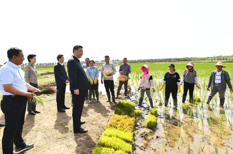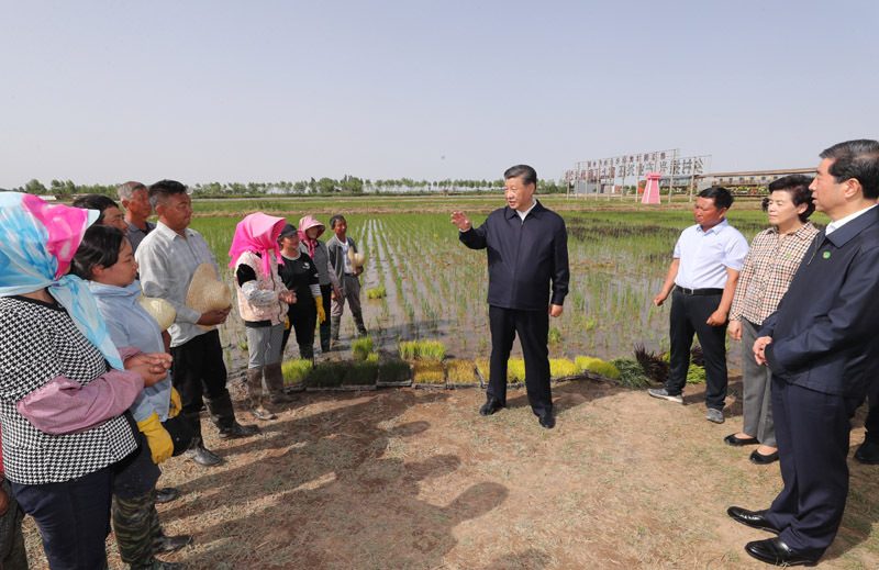 6月8日至10日,中共中央總書記、國(guó)家主席、中央軍委主席習(xí)近平在寧夏考察。這是6月9日下午,習(xí)近平在銀川市賀蘭縣稻漁空間鄉(xiāng)村生態(tài)觀光園,了解寧夏現(xiàn)代農(nóng)業(yè)發(fā)展和特色農(nóng)產(chǎn)品情況。新華社記者 鞠鵬 攝