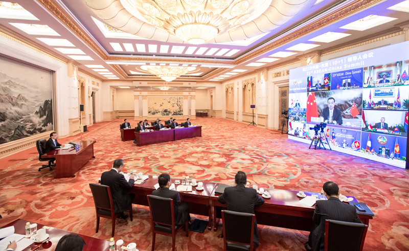 會議發(fā)表了《落實中國—東盟面向和平與繁榮的戰(zhàn)略伙伴關(guān)系聯(lián)合宣言的行動計劃(2021-2025)》和《中國—東盟關(guān)于建立數(shù)字經(jīng)濟合作伙伴關(guān)系的倡議》,宣布2021年為中國—東盟可持續(xù)發(fā)展合作年。與會領(lǐng)導(dǎo)人還共同觀看了“中國—東盟并肩抗疫、共促發(fā)展”視頻片。