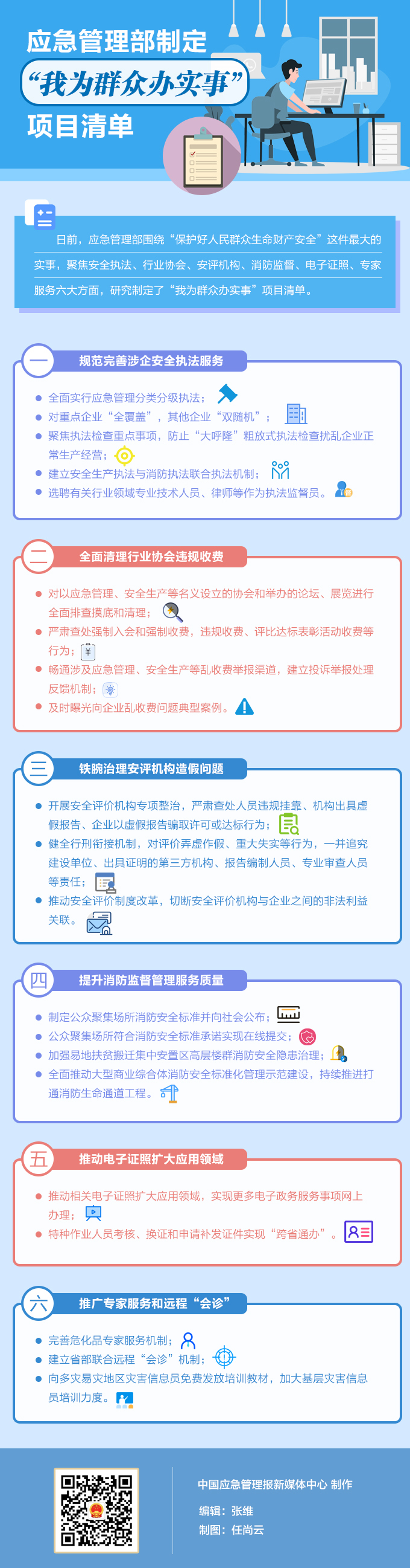 日前,應(yīng)急管理部按照中央黨史學(xué)習(xí)教育領(lǐng)導(dǎo)小組關(guān)于“我為群眾辦實(shí)事”實(shí)踐活動部署要求,在深入開展調(diào)研、廣泛聽取意見,認(rèn)真梳理基層和群眾反映集中的突出問題基礎(chǔ)上,圍繞“保護(hù)好人民群眾生命財產(chǎn)安全”這件最大的實(shí)事,聚焦安全執(zhí)法、行業(yè)協(xié)會、安評機(jī)構(gòu)、消防監(jiān)督、電子證照、專家服務(wù)六大方面,研究制定了“我為群眾辦實(shí)事”項(xiàng)目清單。
