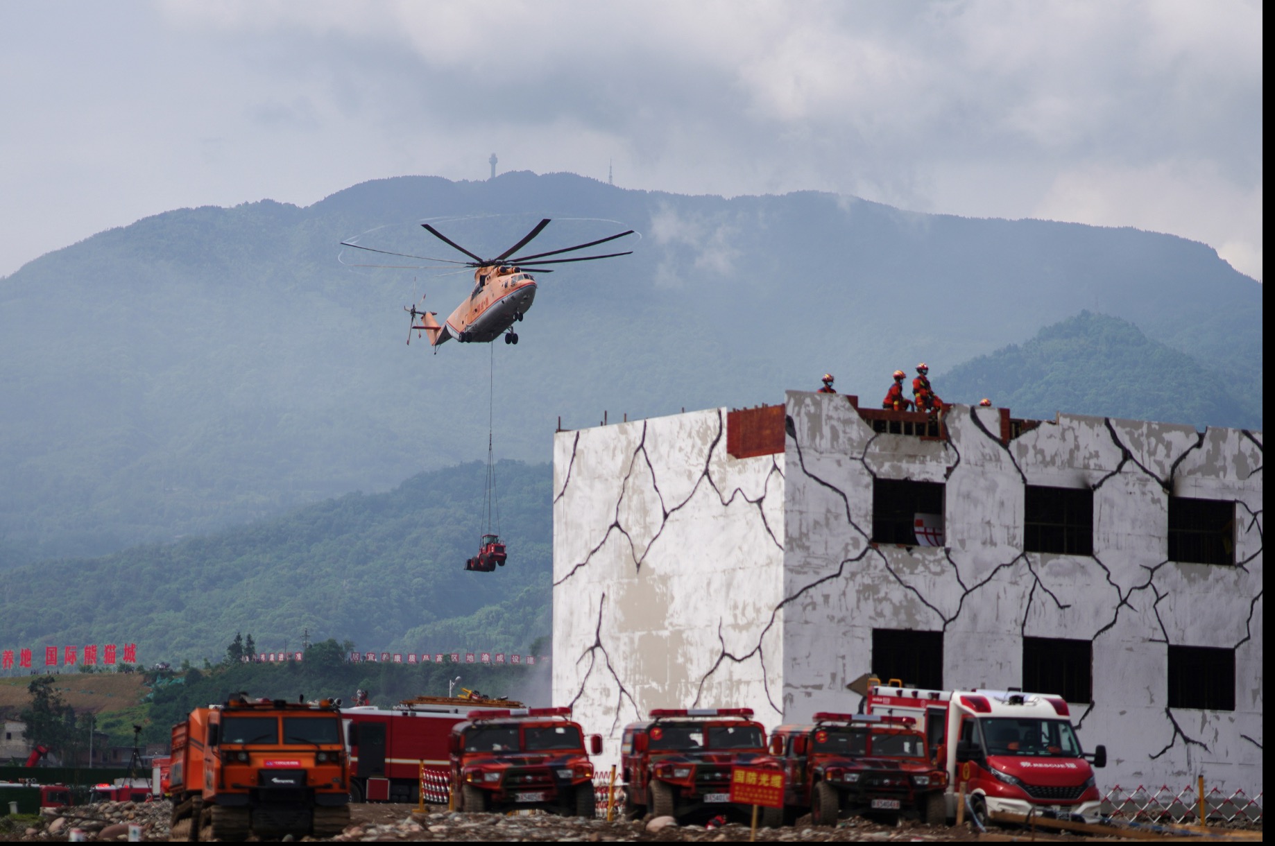 地震災(zāi)害往往對地面道路造成嚴重破壞,參與救援的重型設(shè)備很難到達救災(zāi)現(xiàn)場,在“應(yīng)急使命·2021”抗震救災(zāi)演習(xí)中,米-26直升機擔負吊運重型設(shè)備飛往救災(zāi)現(xiàn)場的運輸任務(wù),特別是吊運挖掘機成功打通生命通道,為地震搶險救援的順利進行起到了關(guān)鍵作用。