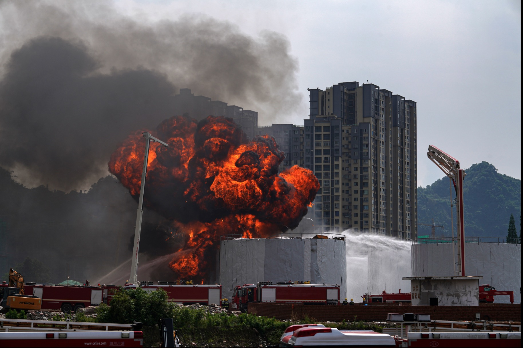 演習(xí)中,一排排整齊的“機器人消防員”頂著儲油罐隨時可能爆炸的危險正在進行滅火作業(yè)。鏡頭推近,高昂的消防炮筒聳立在正前方,潛望式攝像頭正目視著四周及時將現(xiàn)場信息回傳給后方,身后便是長長的水帶,一群像坦克一樣的機器人正在作業(yè),這就是四川消防救援總隊瀘州消防救援支隊的機器人大隊。