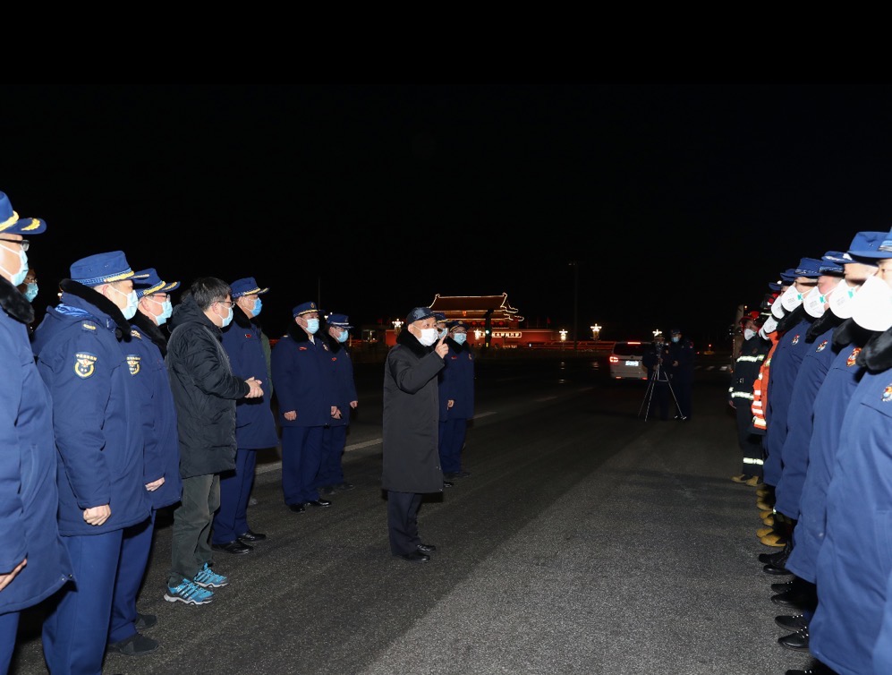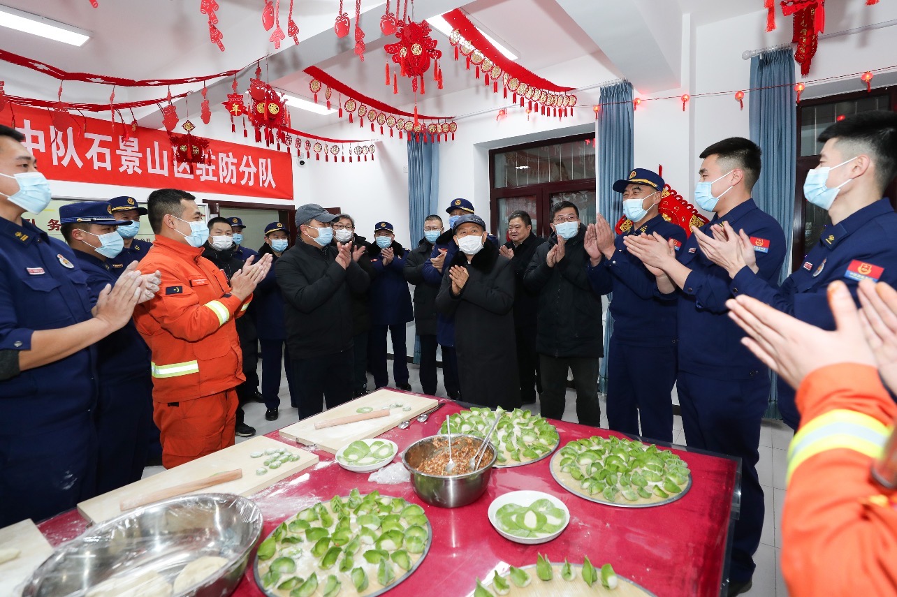 黃明一行先后來(lái)到天安門(mén)消防救援支隊(duì)在天安門(mén)廣場(chǎng)的執(zhí)勤點(diǎn)、中國(guó)地震臺(tái)網(wǎng)中心、北京冬奧組委首鋼辦公區(qū)及周邊森林防滅火駐防點(diǎn),看望慰問(wèn)了應(yīng)急值守的干部職工和消防救援人員,聽(tīng)取了有關(guān)安保工作情況匯報(bào)。黃明說(shuō),在這個(gè)舉國(guó)歡慶、萬(wàn)家團(tuán)圓的時(shí)刻,大家舍小家為大家,默默堅(jiān)守崗位奮戰(zhàn)在一線,用辛勞和付出保障北京冬奧會(huì)順利舉辦、群眾平安過(guò)節(jié),向大家表示親切慰問(wèn)和衷心感謝。要進(jìn)一步增強(qiáng)風(fēng)險(xiǎn)意識(shí)和底線思維,時(shí)刻繃緊安全神經(jīng),加強(qiáng)值班值守和應(yīng)急準(zhǔn)備,做好流動(dòng)執(zhí)勤、帶裝巡查、封堵火源等工作,最大限度消除各類(lèi)安全風(fēng)險(xiǎn)隱患,切實(shí)當(dāng)好祖國(guó)心臟的“守夜人”。黃明祝愿大家虎年虎虎有生氣、萬(wàn)事皆順利!同時(shí)叮囑在室外執(zhí)勤巡防一定要做好御寒保暖,嚴(yán)格落實(shí)疫情防控措施,相關(guān)方面要強(qiáng)化勤務(wù)保障。