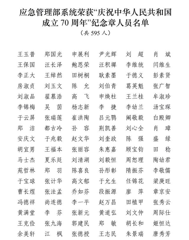 應(yīng)急管理部頒發(fā)“慶祝中華人民共和國成立70周年”紀念章