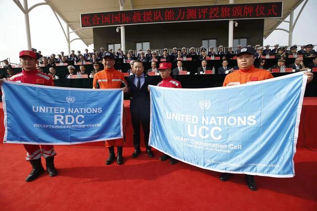 10月23日,中國救援隊和中國國際救援隊成功通過聯(lián)合國國際重型救援隊測評和復測,中國成為亞洲首個擁有兩支獲得聯(lián)合國認證的國際重型救援隊的國家。聯(lián)合國國際重型救援隊授旗頒牌儀式在北京舉行,應急管理部副部長鄭國光、尚勇,聯(lián)合國人道主義事務協(xié)調(diào)辦公室代表拉梅什·拉杰辛汗和國際城市搜索與救援咨詢團亞太區(qū)候任主席國代表、新加坡民防部隊總監(jiān)葉偉德等出席儀式。