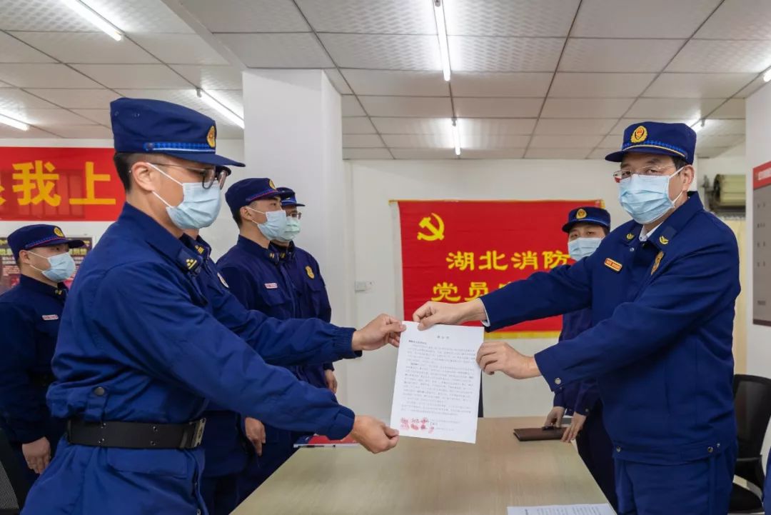 火神山消防救援站臨時黨支部負責人代表全站指戰(zhàn)員向工作組遞交了聯(lián)名《決心書》。大家一致表示,作為應急救援主力軍、國家隊的一員,將在抗疫一線踐行共產黨人的初心使命,堅決守護火神山醫(yī)院和一線醫(yī)護人員、病人的消防安全。湖北省消防救援總隊張春陽政委、陳萬紅總工程師一同參加慰問。