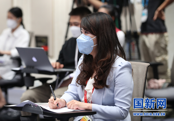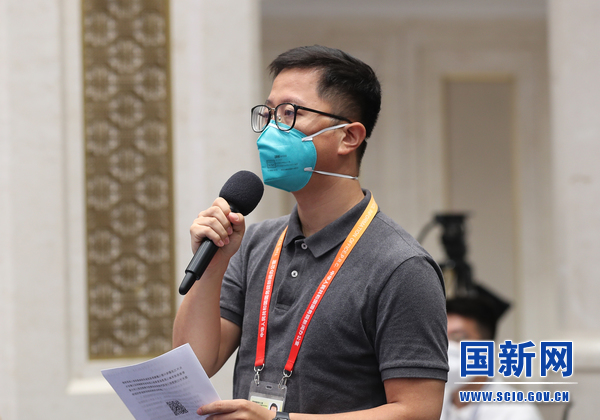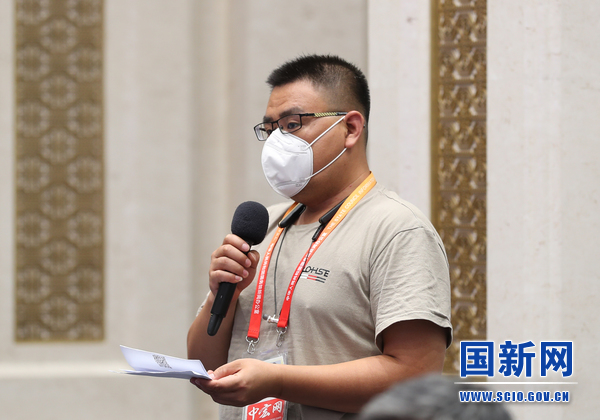 中宏網(wǎng)記者提問(張馨 攝)